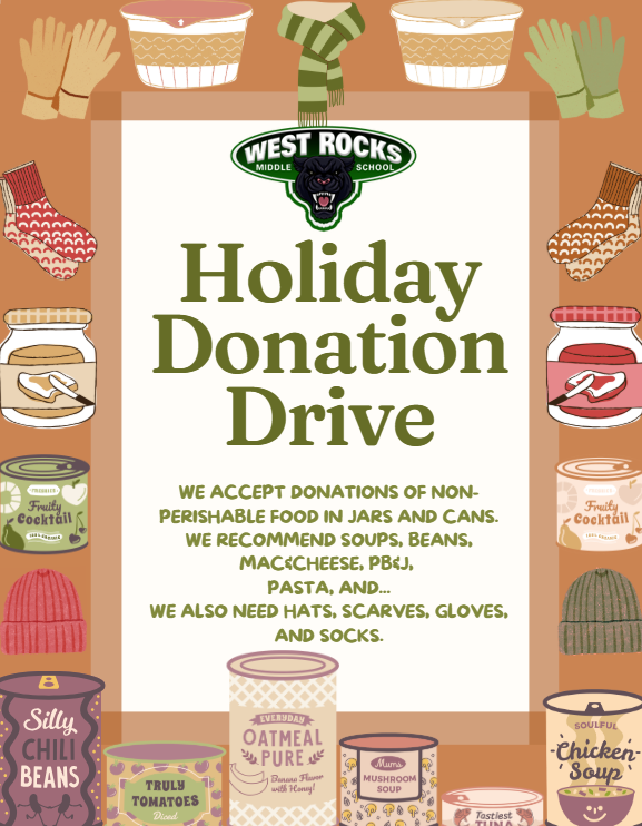 Our Holiday Donation Drive begins this week. Our goal is to support families with non-perishable food and winter wear before leaving for the December break. Donations will be collected in homeroom. The homeroom that collects the most items will be treated to a special breakfast.
