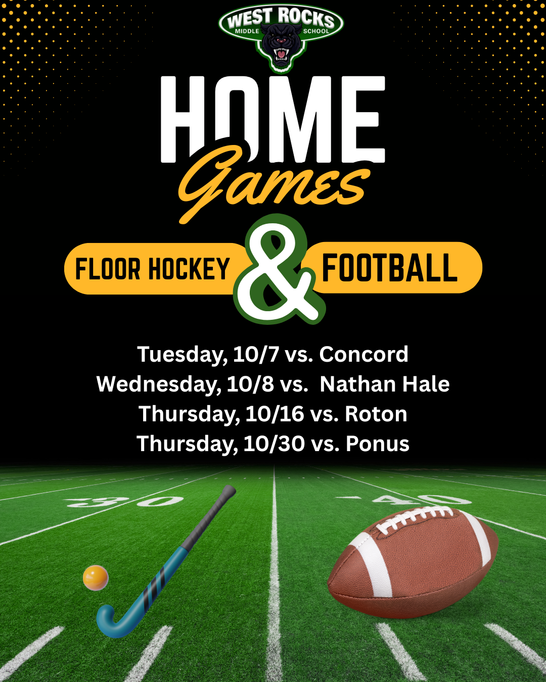 Our Flag Football and Floor Hockey Travel Teams continue their season in the upcoming weeks. Come out and cheer on our teams at our remaining two home games. Students are only allowed to attend away games at other schools if they are accompanied by an adult.