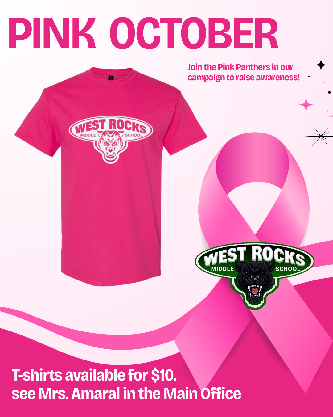 • Purchase Pink Merchandise: Pink t-shirts and bracelets will be sold during lunch periods. All proceeds will go towards supporting breast cancer awareness initiatives.