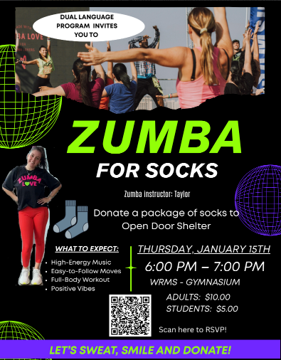 The Dual Language Program invites you to a high-energy Zumba event to support our community! Join us for a fun-filled hour of fitness led by our instructor, Taylor. Whether you are looking for a full-body workout or just some positive vibes, this event is for everyone.