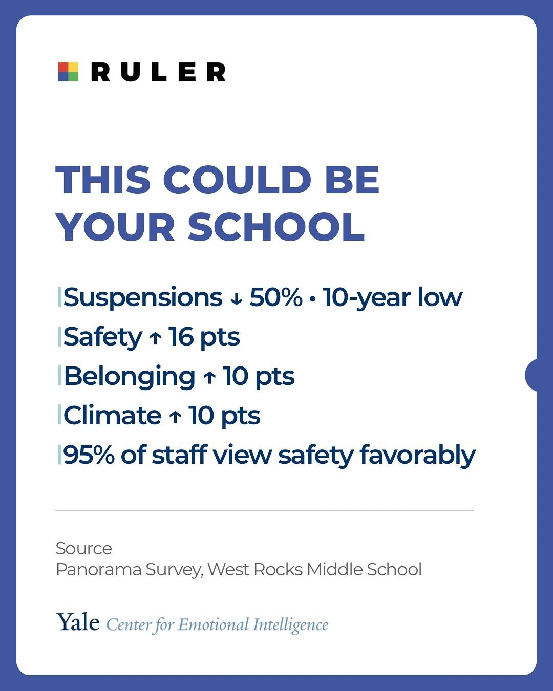 In this week’s RULER Recap, we shared that RULER has highlighted our work on social media, specifically around our Panorama Survey results. Be sure to follow our accounts on Facebook and Instagram to see more updates about the positive press from RULER!