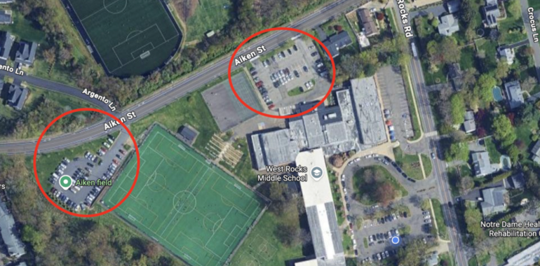 • Families should park in the Aiken Street lot first; once full, please wait in the turf lot.