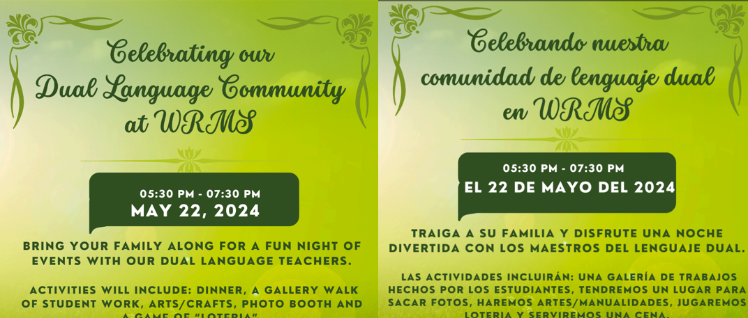 Students and staff in our dual language program are sponsoring the first ever WRMS Dual Language Community Family Night this Wednesday 5:30-7:30pm. Don’t worry about cooking this Wednesday! There will be dinner, activities, and students showing their work! Please RSVP for this great event using the link below! Direct questions to one of our dual language coordinator Mrs. Sheila Chimento (chimentos@norwalkps.org).